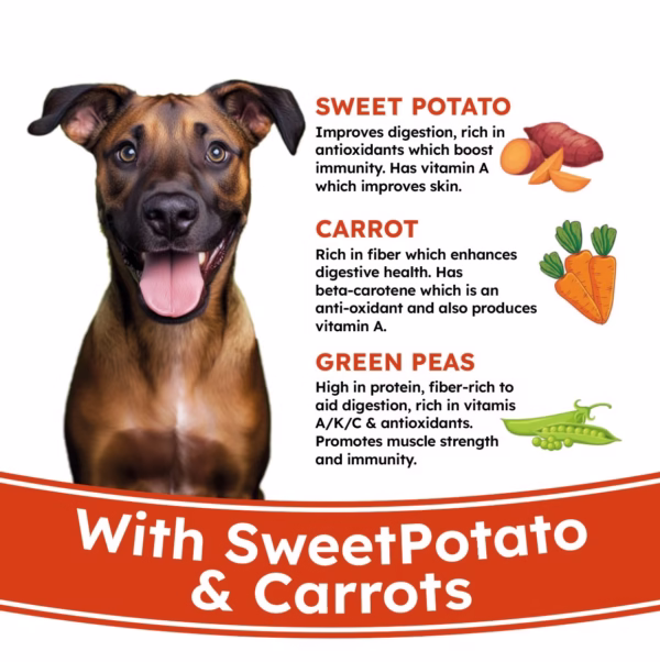 - ANTIOXIDANTS FROM SWEETPOTATO – Sweet Potato also helps Improve Digestion , Boosts Immunity , Improves Skin and Coat Health
