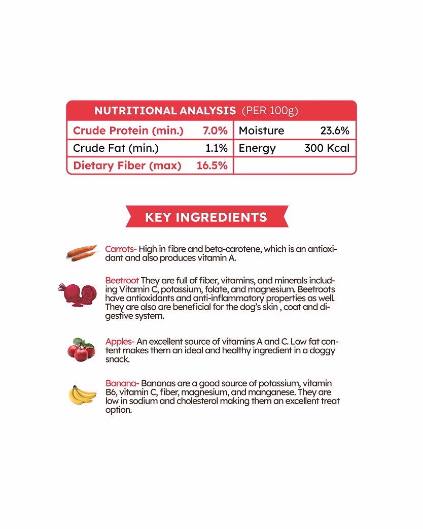 - High Fiber Veg Snack made with Real Fruits & Veggies